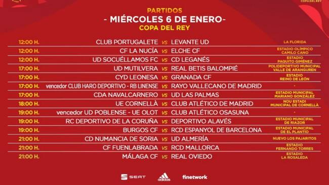 El otro equipo malagueño inmerso en el torneo copero es el Marbella, que se medirá al Valladolid en el estadio municipal Lorenzo Cuevas, el 5 de enero a las 19 horas.