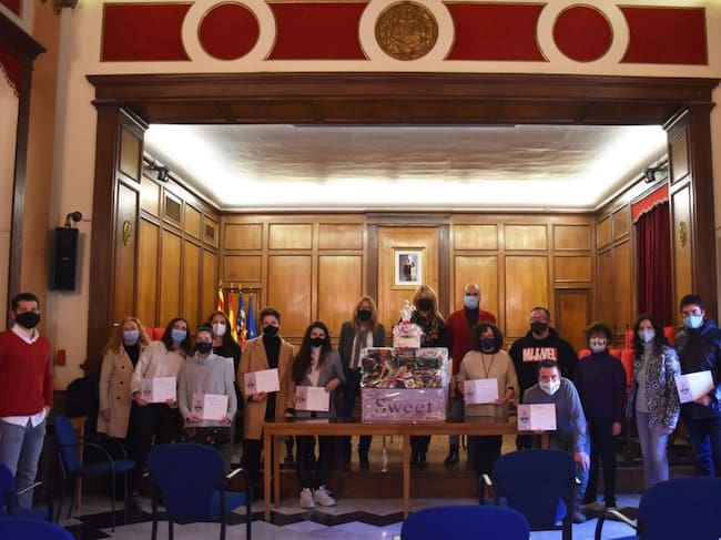 Ganadores, segundos clasificados y autoridades en el Salón de Plenos del Ayuntamiento / Ajuntament d'Alcoi
