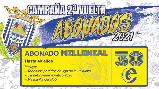 La Arandina avanza su campaña de abonados de 2ª vuelta. La directiva blanquiazul busca la fidelidad del aficionado en el delicado momento por el que atraviesa la entidad. La falta de liquidez y su necesidad han propiciado que esta tradicional maniobra de captación de socios vea la luz, en un año especial también por el formato de la competición.