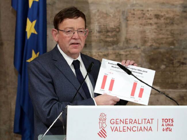 Ximo Puig considera la actitud de Ayuso insultante para los valencianos porque, mientras en 1995 la diferencia de renta per cápita entre la Comunidad de Madrid y la Comunitat Valenciana era de 35 puntos favorable a la primera, ahora es de 48 puntos: