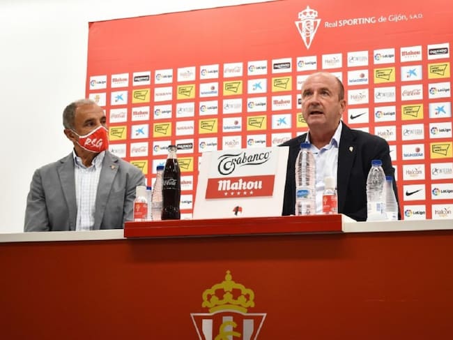 Javier Martínez (dcha) en un acto del club. / Real Sporting