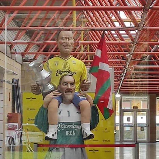 Ondare Kultur Elkartea y el C.D. Bidasoa han presentado este lunes el gigante bidasotarra que pasará a engrosar la nómina de figuras de la asociación cultural. Se trata de un gigante especial, ya que es un gigante doble: uno encima de otro, que en este caso son el exportero bidasotarra Tomas Svensson y sobre él, Aitor Etxaburu con la Copa de Europa que el club logró en 1995.