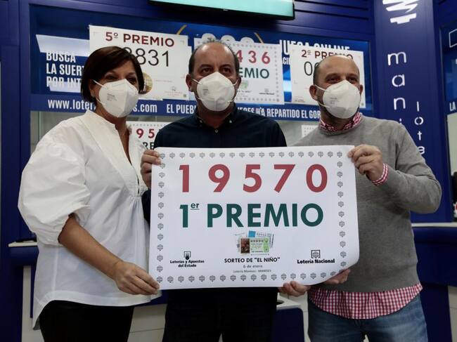La administración de Lotería número 3 de Manises ha repartido 2.075.000 euros del sorteo de la Lotería del Niño al vender una serie del primero premio, el 19.570, y un décimo del segundo, el 3.436.EFE Biel Aliño / Biel Aliño (EFE)