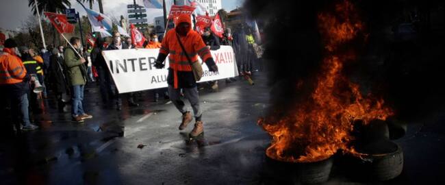 Los trabajadores de Alu Ibérica en A Coruña han realizado esta mañana una marcha a pie desde la fábrica de A Grela hasta la Delegación del Gobierno en Galicia, e la plaza de Ourense. Insisten en exigir la readmisión de una compañera y también la intervención de la planta. Llevan 14 días de huelga indefinida. Han cortado el tráfico frente a la Delegación y han quemado neumáticos.