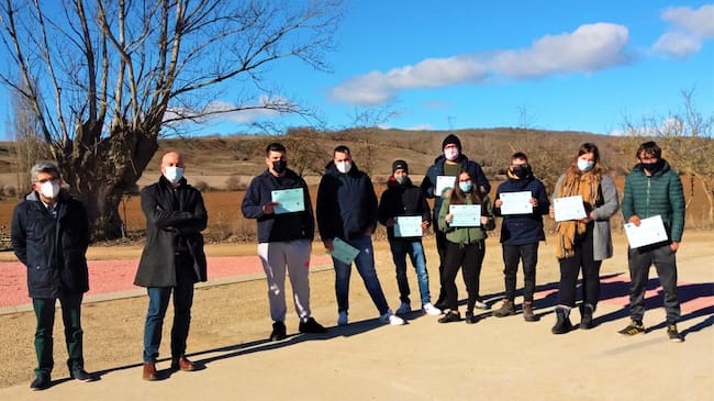 Los diputados provinciales del área de Promoción Económica y Empleo, Luis Calderón; y del servicio de Agricultura y Desarrollo Rural, Jesús Manuel Sevilla, se desplazaron a la Escuela de Formación Tablares para entregar a los alumnos los diplomas acreditativos de esta formación, que se enmarca en la medida 8.2.3.I de los Objetivos de Desarrollo Sostenible —Formación específica en materias concretas propias de la zona, acompañada de formación en autoempleo y/o creación de empresas—, con el fin de incentivar y promover proyectos que aumenten la empleabilidad y el emprendimiento de las personas jóvenes del medio rural palentino.