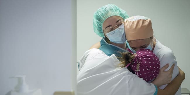 Tres enfermeras se abrazan. / María José López - Europa Press (EUROPA PRESS)