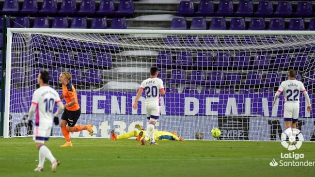El Valladolid, peor que su rival en la primera mitad, pudo empatar, pero lo impidió el palo en la última del encuentro