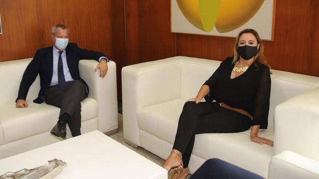 La presidenta del Cabildo de Lanzarote, Maria Dolores Corujo y el consejero de Obras Públicas del Gobierno de Canarias, Sebastián Franquis.