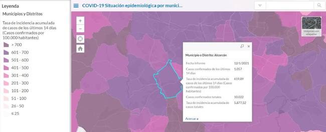 Mapa de la situacióon epidemiológica de Alcorcón / Comunidad de Madrid