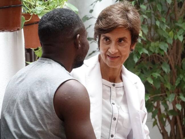 Una trabajadora del centro de acogida San Juan de Dios atiende a una persona