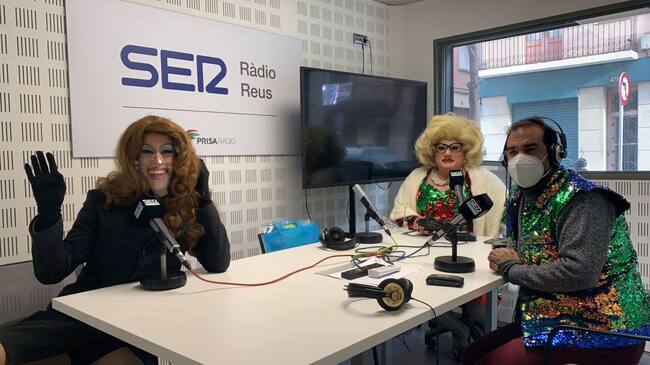 D'esquerra a dreta: Lady Savannah, La Mega Pubilla i Màgic Manu als estudis de Ràdio Reus. / Oriol Aymí.