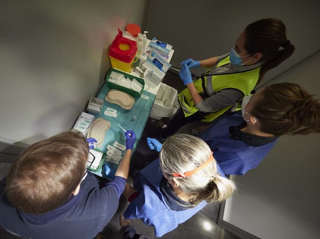 Varios trabajadores sanitarios, con material necesario para administrar la vacuna contra la COVID-19
