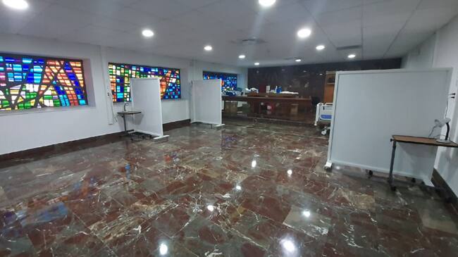 Además, han facilitado imágenes de la capilla y también de la cafetería del hospital con fecha de hoy para demostrar cómo se han habilitado con camas para pacientes no covid y que no se están utilizando porque aún no ha hecho falta.