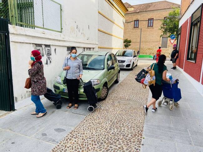 Colas del hambre frente al CEIP Rey Heredia, en una imagen de archivo / Cadena SER