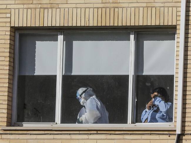 Un sanitario con un EPI y una enferma en el Hospital Antiguo de la Fe en Valencia (España), a 2 de febrero de 2021. / Rober Solsona (Europa Press)
