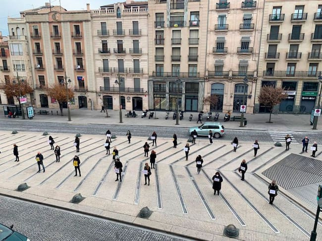 Un instante de la protesta realizada en la Plaza de España recientemente / Asociación de Peluqeros de Alcoy y Comarca