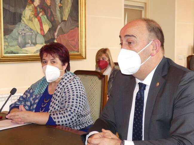 Clara Luquero, alcaldesa de Segovia, y Miguel Ángel de Vicente, presidente de la Diputación, en la firma del convenio / Radio Segovia / Cadena Ser