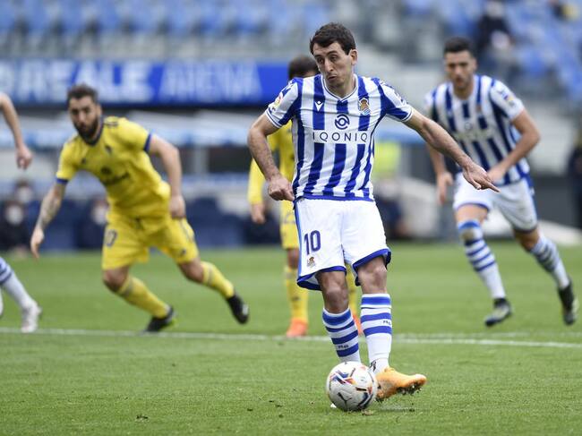 Oyarzabal lanza un penalti en el último partido contra el Cádiz / Juan Manuel Serrano Arce (Getty Images)