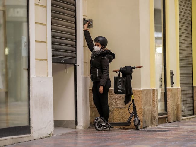 La trabajadora de un comercio cierra su establecimiento el primer día del cierre total de la hostelería y de tiendas a las 18.00h en València / Rober Solsona (EUROPA PRESS)