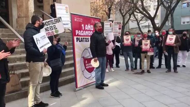 Una representación de hosteleros de toda la provincia se han concentrado este martes en Ciudad Real secundando la protesta que se ha convocado en toda España para denunciar que el sector lleva "un año pagando los platos rotos de la pandemia".