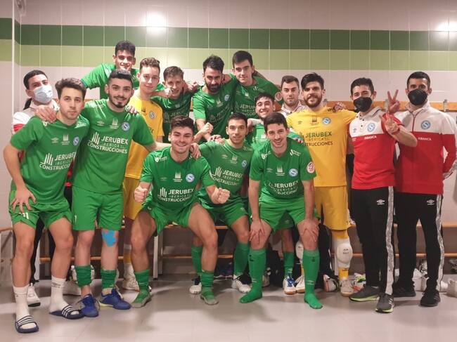 Los integrantes del JERUBEX Santiago celebran el triunfo en el vestuario tras el partido ante el Rivas / JSFS
