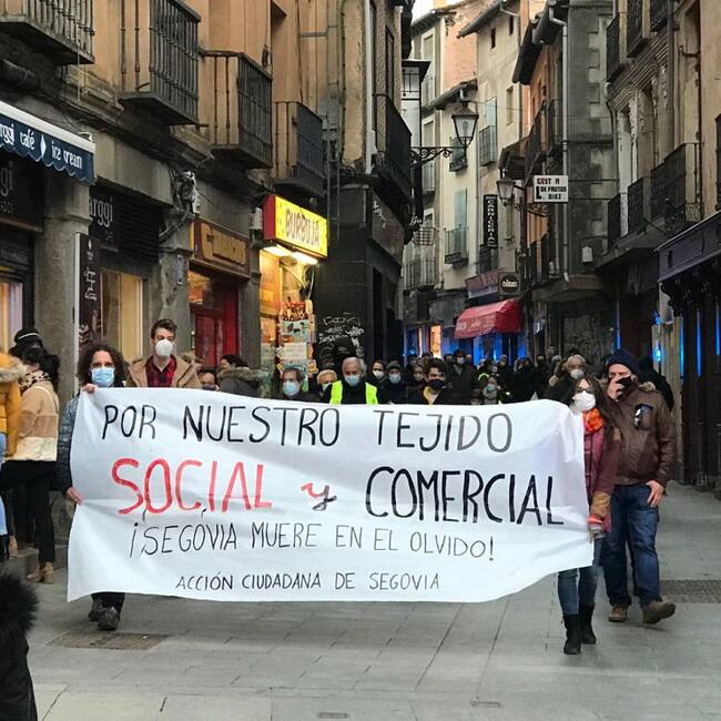 Más de un centenar de personas han participado en la marcha convocada por Acción Ciudadana de Segovia para defender el tejido social y comercial de la provincia y contra el olvido de las instituciones. La marcha ha partido desde la Plaza de José Zorrilla y ha discurrido por el centro de la ciudad hasta la Plaza Mayor.