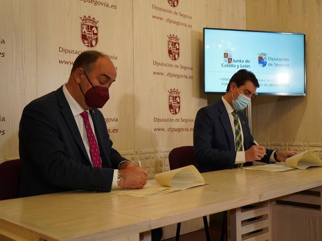 El consejero de la Presidencia, Ángel Ibáñez, y el presidente de la Diputación provincial de Segovia, Miguel Ángel de Vicente, han firmado el convenio entre ambas instituciones que permitirá la gestión de parte del Fondo Extraordinario en la provincia de Segovia, en concreto para los municipios de menos de 1.000 habitantes. Este fondo permitirá movilizar más de 1,9 millones de euros para inversiones en municipios de menos de 1.000 habitantes, lo que afecta a unos 186 municipios. Esta cantidad forma parte de los 5,1 millones de euros que llegan a la provincia de Segovia incluyendo la capital y los municipios de más de 1.000 habitantes.
