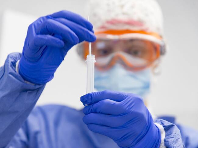 Una sanitaria con una muestra PCR en la mano. / Getty Images