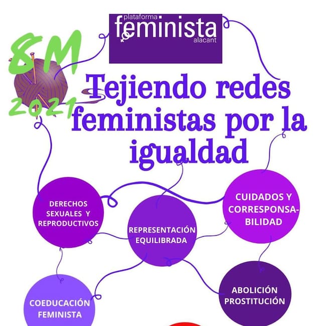 La Plataforma Feminista de Alicante prepara la celebración del 8-M, el Día Internacional de la Mujer, con una decena de concentraciones en la ciudad, y otras repartidas por la provincia, pero simbólicas y con una participación restringida, con el registro del nombre y apellidos de los participantes.