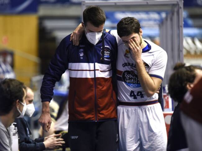 Pepe Pozas se retira al banquillo tras sufrir la lesión en su rodilla izquierda que le obligó a dejar el partido / ACB/A.Baúlde