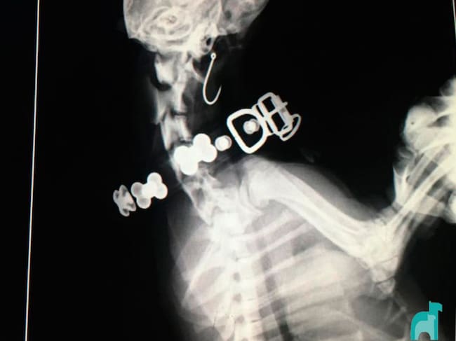 Radiografía de Zoe donde se el anzuelo ingerido. / Hospital Veterinario Asturias