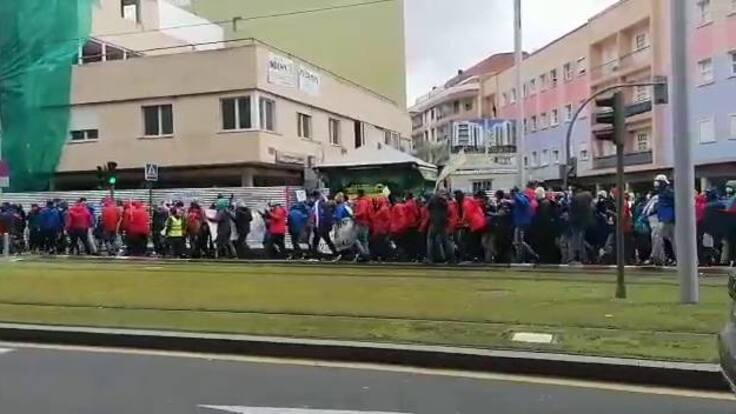 La manifestación partió desde el campamento de Las Raíces, donde desde primera hora de la mañana se concentraban numerosas personas con pancartas en las que pedían un cambio en la política migratoria y el desbloqueo de los traslados a la Península por parte del Gobierno del Estado. Para garantizar la seguridad, agentes de las fuerzas y cuerpos de seguridad del Estado se encargaron en todo momento de que los concentrados no corrieran riesgo durante el recorrido y realizaron los cortes de tráfico necesarios.