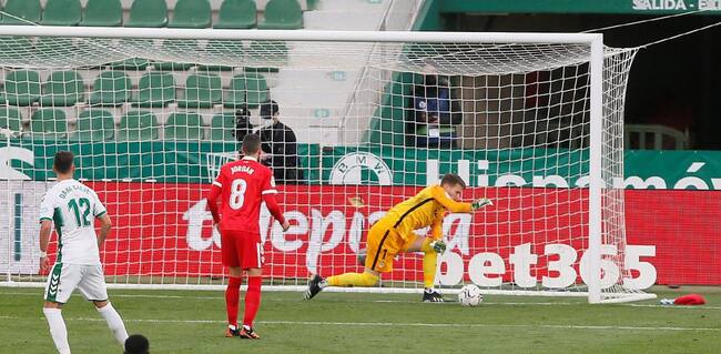 Vaclik no pudo evitar el segundo gol del Elche. / Manuel Lorenzo (EFE)