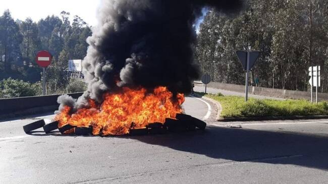La movilización comenzó en la rotonda de Placeres, donde se quemaron neumáticos. Los trabajadores movilizados portaban dos pancartas, con los lemas 'Pola industrialización de Galicia' y ' Queredes destruir o 50% do tráfico del Porto de Marín'.