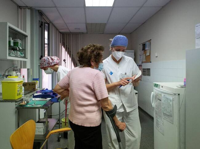 Una enfermera atiende a una persona perteneciente al grupo de vacunación de mayores de 80 años / Enric Fontcuberta (EFE)