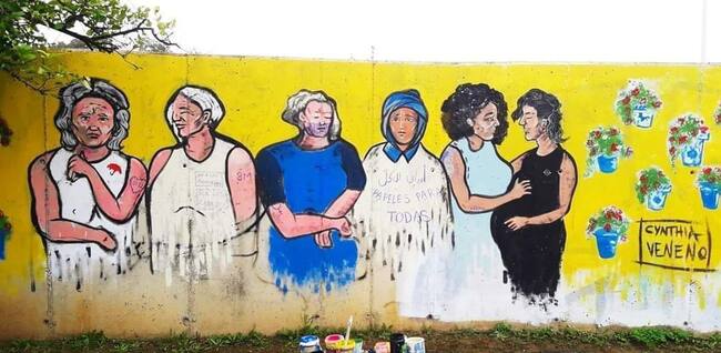 El mural es obra de la artista Cynthia Veneno que ayer aseguró sentirse "en shock" antes las pintadas en un mural "inofensivo" que solo representaba a mujeres de distinta edad y procedencia. El mural lo pintó el sábado en unos actos previos al 8-M.