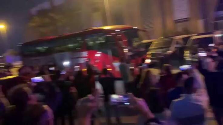 La plantilla celebra el pase a la Primera RFEF a su llegada al Nuevo Mirador