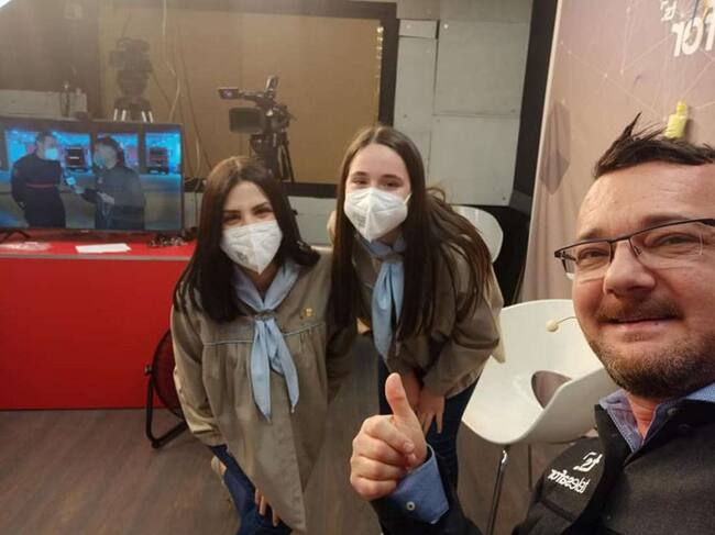 Las Falleras Mayores de Gandia en el programa especial junto al presentador Daniel Ardid / Redacción