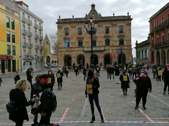 Decenas de profesionales del sector se concentraron este lunes en la plaza Mayor de Gijón. / Ser Gijón