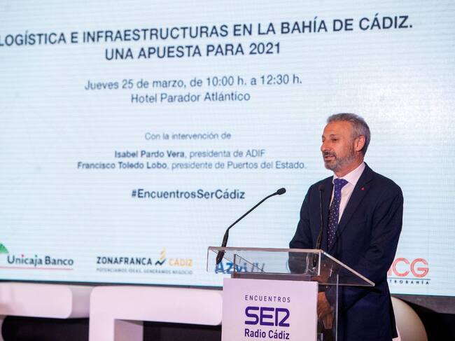 Toledo habló tras la presidenta de ADIF, Isabel Pardo de Vera, en este encuentro SER ante un público en el que también estaban la presidenta de la Autoridad Portuaria, Teófila Martínez; el delegado de la Zona Franca, Fran González; los alcaldes de Cádiz, Puerto Real, San Fernando y Rota; la delegada de la Junta en Cádiz, Ana Mestre; el subdelegado del Gobierno, José Pacheco o el presidente de la Confederación de Empresarios de Cádiz, Javier Sánchez Rojas, entre otros.