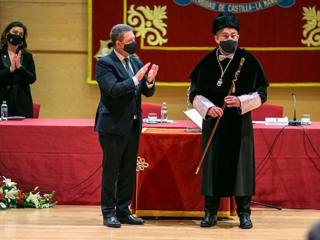 Julián Garde investido con los atributos propios de rector, por el presidente Emiliano García Page / Junta de Comunidades Castilla La Mancha