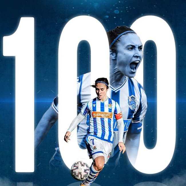 La delantera de Urnieta se convierte en la primera mujer en marcar 100 goles con la Real Sociedad. En el cómputo global es el octavo futbolista del club txuri-urdin en alcanzar esa cifra. Sus compañeras la mantearon al final del partido contra el Espanyol