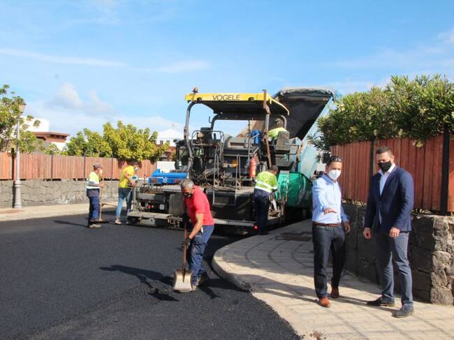 Mientras avanzan las obras de asfaltado y remate de aceras, operarios de la contratista también desarrollan la segunda fase de reconstrucción de calle La Molina, la vía que más tráfico soporta de la zona y que, por su deterioro, la que más intervención demandaba. “Solo en calle La Molina levantamos 650 metros cuadrados nuevos de acera, instalamos sistema de desagüe de pluviales y ya reconstruimos el tramo de vía comprendido entre la rotonda de La Molina y el linde con la urbanización El Aulagar, así que ahora los trabajos se concentran por delante de este residencial”, puntualiza Jonatan Lemes.