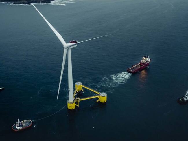 Un molí de vent al mar, en una imatge d'arxiu del web BlueFloat Energy / Principle Power/Dock90