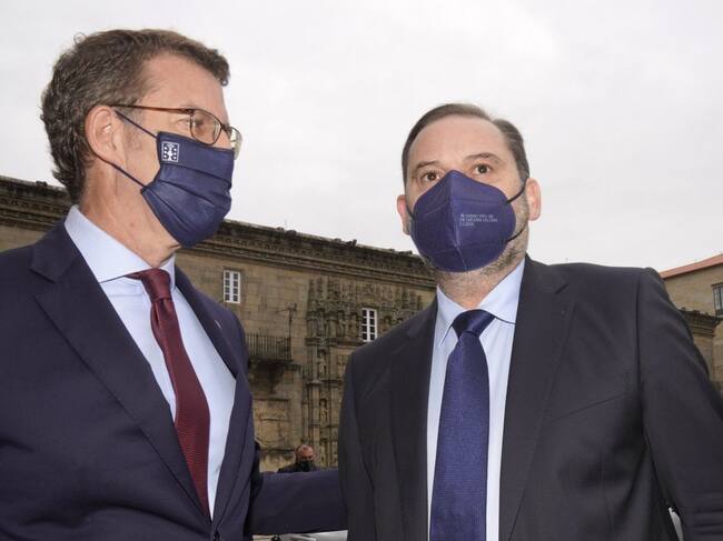 El presidente de la Xunta, Alberto Núñez Feijóo (i), se reúne con el ministro de Transportes, José Luis Ábalos / Álvaro Ballesteros (Europa Press)