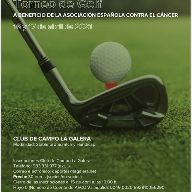 Los próximos días 16 y 17 de abril se va a celebrar en el Club de Campo La Galera un torneo de golf a beneficio de la Asociación Española Contra el Cáncer en las modalidades de Stableford y Handicap.