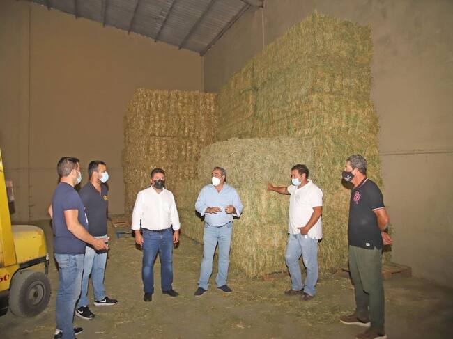Visita a la nave de almacenamiento de forraje con representantes de la ADSG Guanapay de Teguise y el consejero de Sector Primario del Cabildo, Ángel Vázquez. / Cadena SER