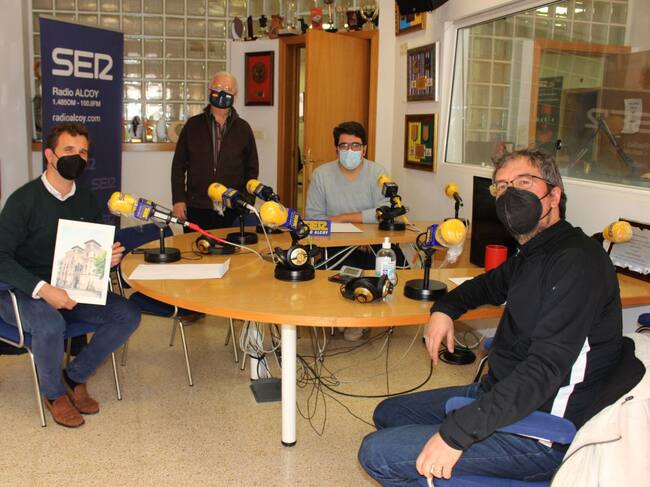 Juan Luis Guitart, Juan Abad, Mateo Martín y Paco Aznar en el estudio central de Radio Alcoy / Radio Alcoy