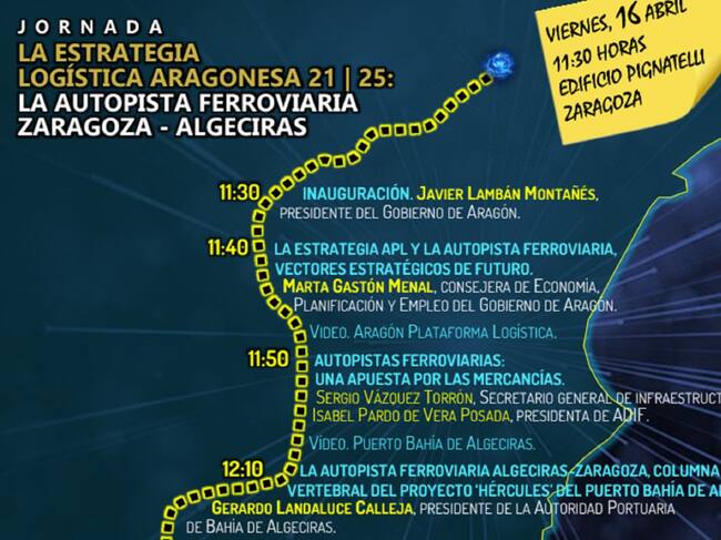 El Puerto de Algeciras participará este viernes en Zaragoza en la presentación de la Autopista ferroviaria Algeciras-Zaragoza, iniciativa integrada en la Estrategia Logística Aragonesa 21/25, y de la que el Ramal Central Algeciras-Bobadilla/Antequera-Córdoba-Madrid-Zaragoza de los corredores Mediterráneo y Atlántico de las TEN-T (Redes Transeuropeas de Transporte) es el eje vertebrador.