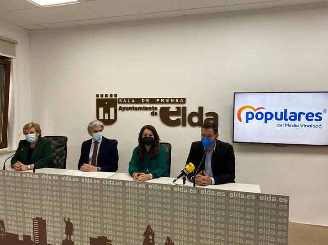 Momento de la rueda de prensa, ayer en Elda / Partido Popular Villena